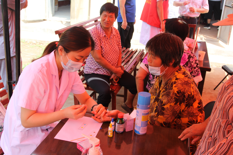本次义诊活动在富官庄镇后陈村和林头村同时进行,我校派驻沂水县“农村基层党组织建设工作队”的工作人员信息科副科长李军、体育教研室副主任徐欣波和工作队的其他人员提前布置好义诊现场。在义诊点,经验丰富的临床教师,认真为村民测量血压,测血糖、测血型,细致解答疑问,针对不同病症和个体差异提出合理的诊疗建议和治疗方案,还为大家讲解常见病、多发病的预防知识和注意事项。此外,对于有既往有高血压和高血糖病史的老年人,学校免费赠送了常用降压降糖药,义诊专家耐心询问他们的身体状况、日常饮食以及用药情况,并给予健康饮食以及合理用药方面的指导。