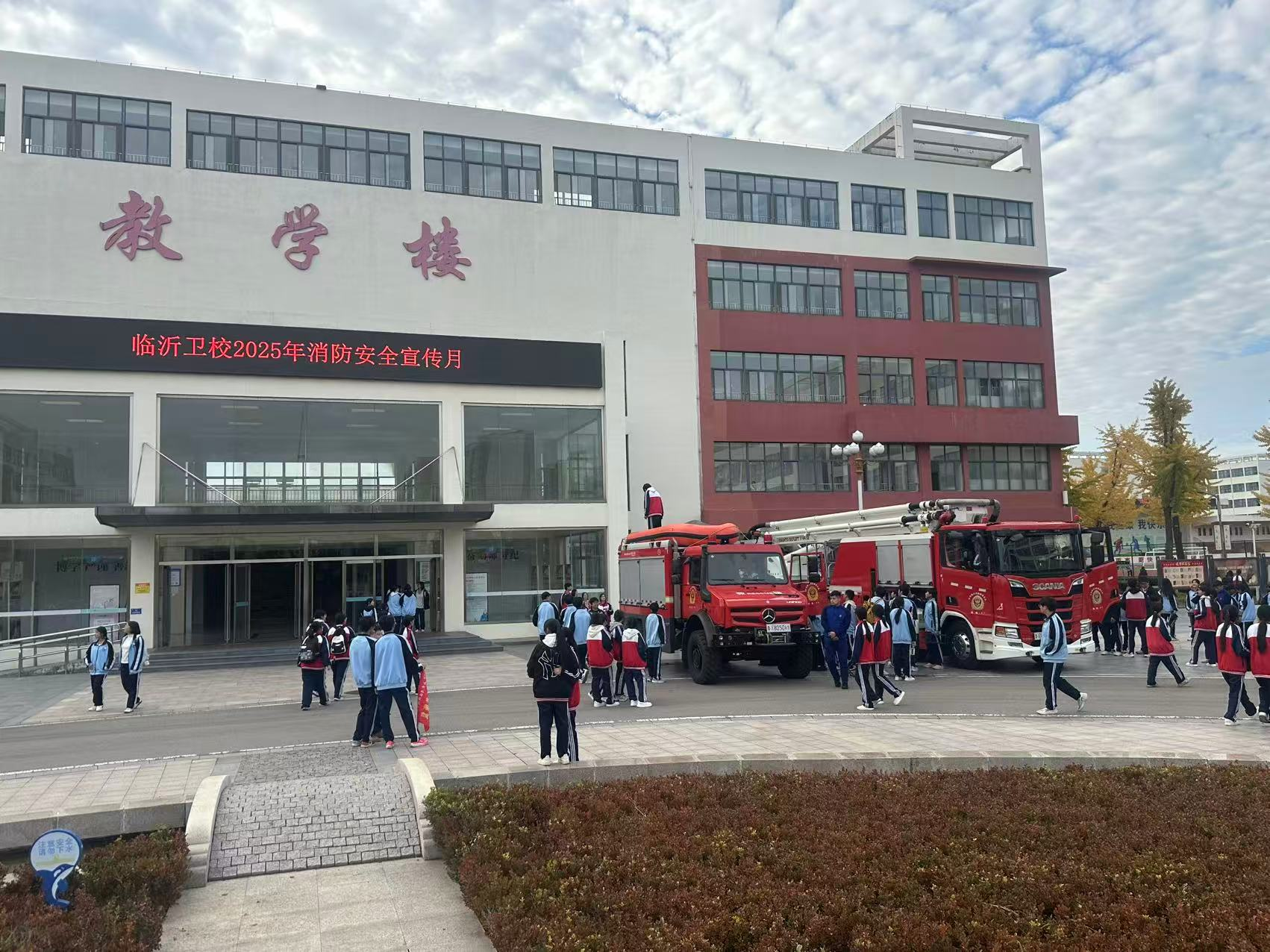 演习结束后,学校联合临沂市消防支队双岭路特勤站,将消防官兵请进了校园。特勤站派来四辆消防车,携带先进的消防设备与同学们近距离互动,大家对消防战士的认知从书籍、电视之中来到了现实。许多同学登上了消防车,体验了一次消防战士的威武风姿,更好的加强了同学们对消防设施设备的认识。
