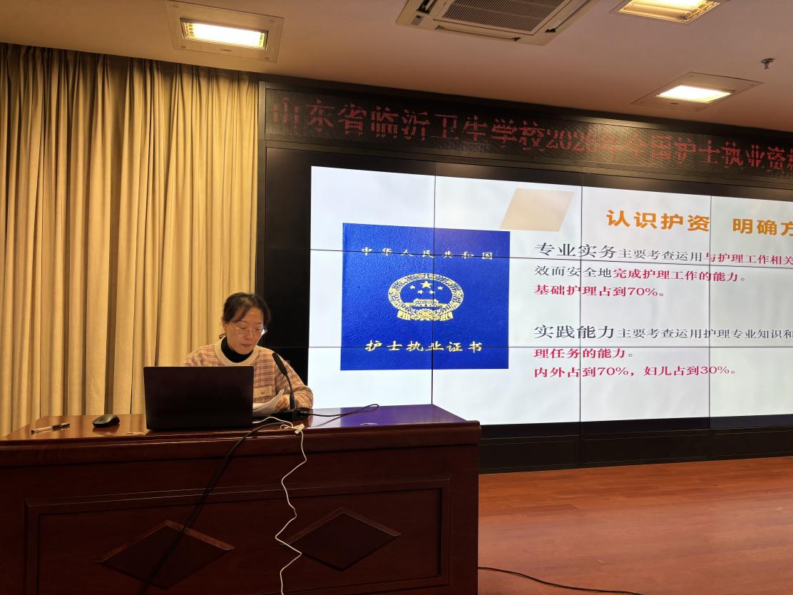 随后,李云彤老师就护考报名流程、关键时间节点及常见注意事项作了详细说明,助力考生全面掌握报名要求,避免疏漏。教务科万春科长在总结讲话中,深入阐释了护士执业资格证对护理专业学生职业发展的重要意义,勉励全体同学珍惜备考时光,全力以赴、潜心钻研,以扎实的知识储备和坚定的信念迎接考试挑战。