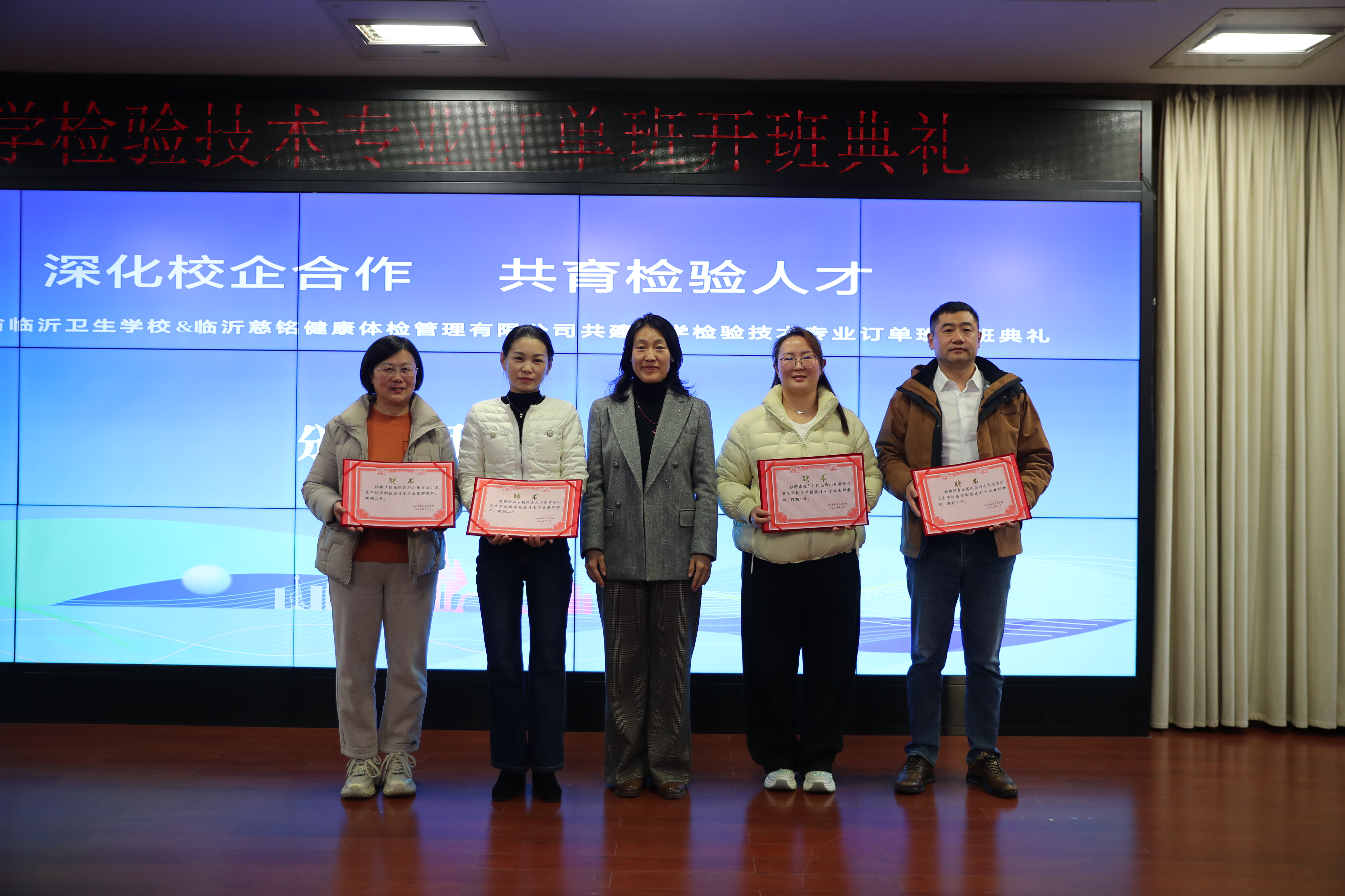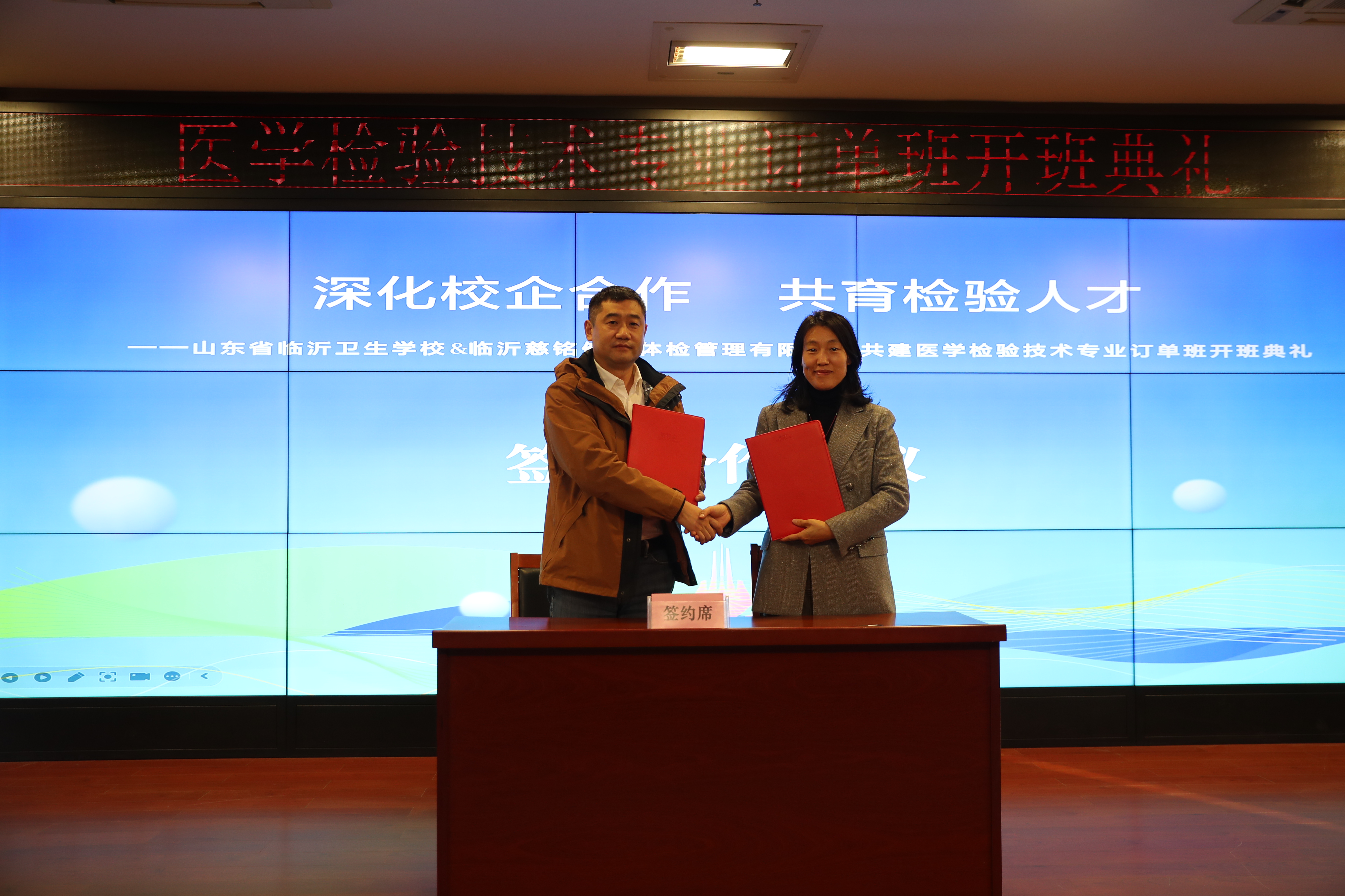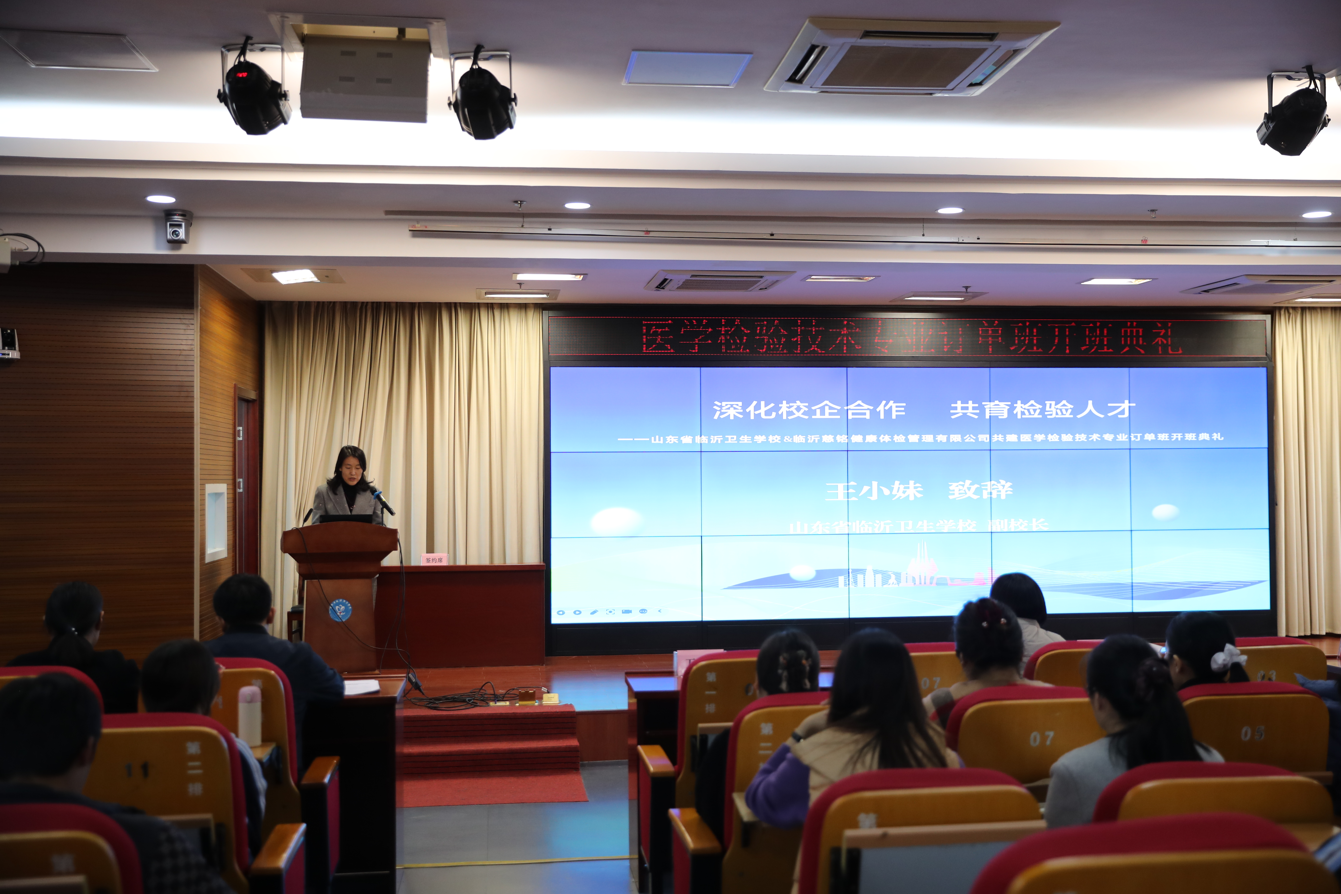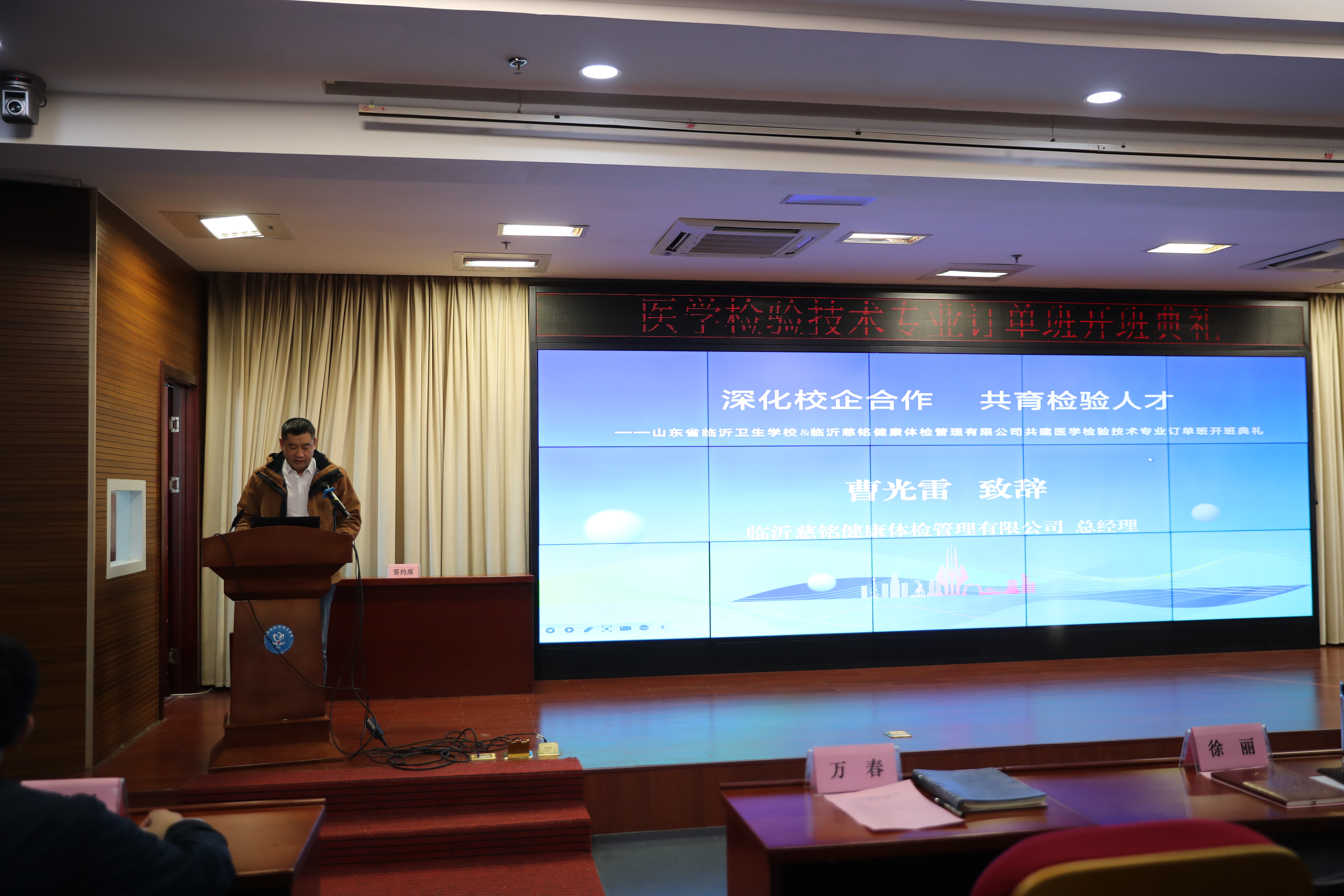 2025年11月19日下午,我校医学检验技术专业与临沂慈铭健康体检管理有限公司联合举办的“深化校企合作,共育检验人才”医学检验技术专业订单班开班典礼,在五楼报告厅顺利举行。此次校企携手不仅响应了国务院“强化人才培养,推动产教融合”的号召,更致力于实现教育链、人才链与产业链的深度融合,为区域医学检验技术领域的高质量发展注入新活力。