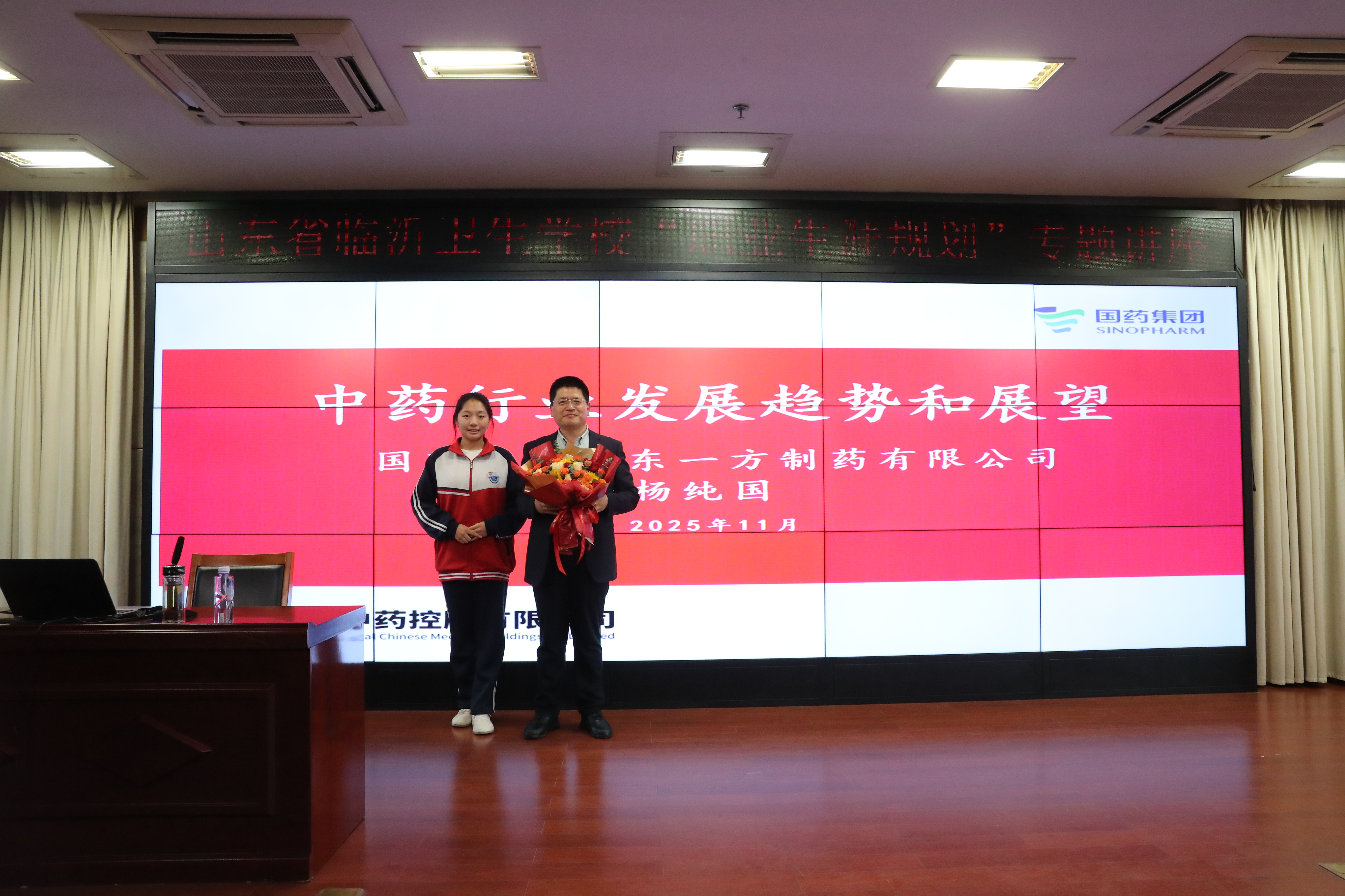 为全面落实立德树人根本任务,切实加强学生职业生涯教育,引导学生树立正确的成才观、就业观与择业观,2025年11月27日下午,我校特邀山东一方制药有限公司副总经理杨纯国先生来校,为全体学生作“以梦为马 不负韶华——我的青春我做主”职业生涯规划专题讲座。讲座由学校党委委员、副校长张旸主持,全体班主任及在校学生通过“主会场+分会场”形式线上线下同步参与。