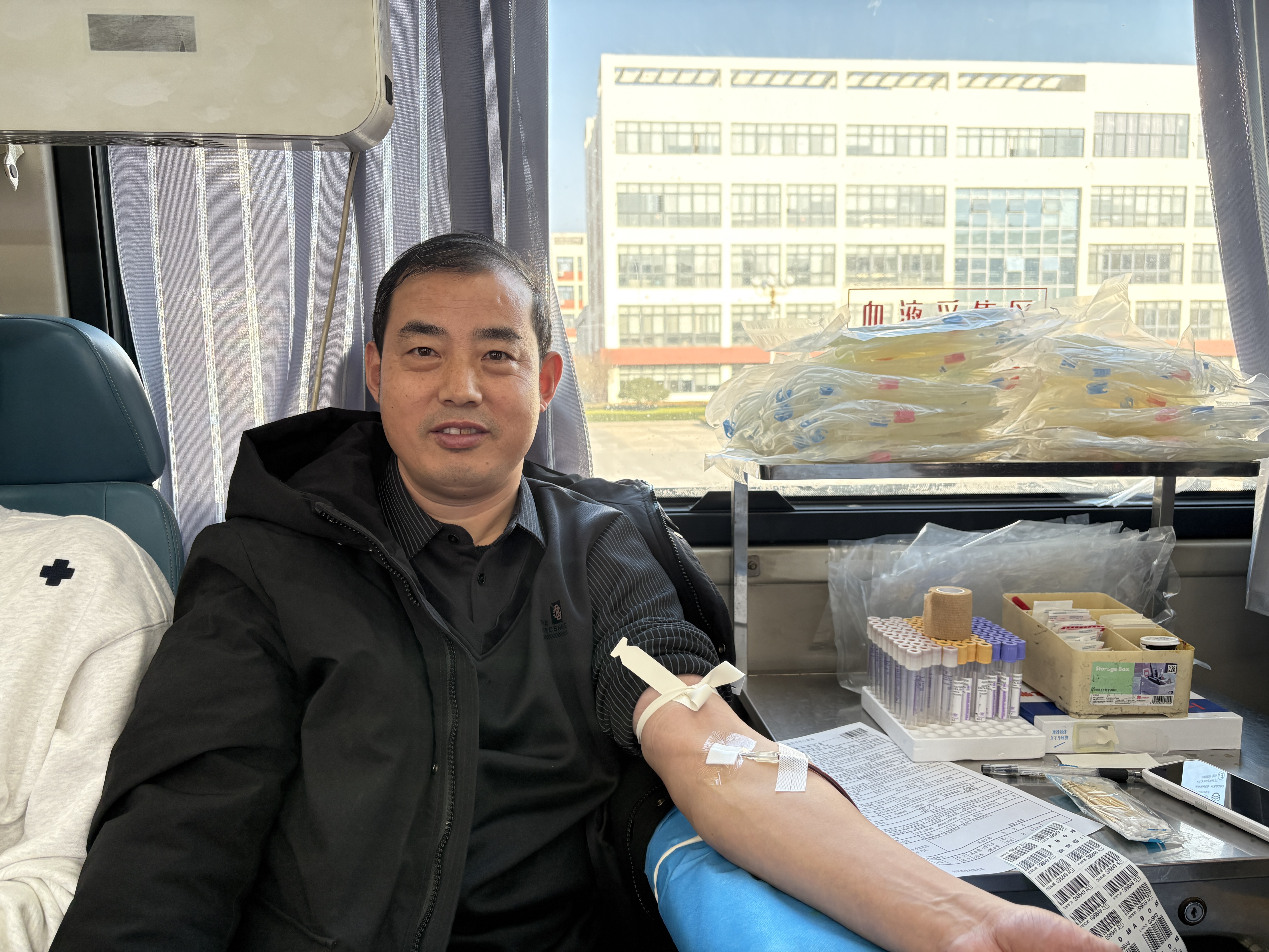 为弘扬人道、博爱、奉献的红十字会精神,传递社会正能量,践行新时代的使命与担当,12月4日上午,我校在教学楼广场开展了无偿献血活动。此次活动由学校办公室、工会、团委组织,广大师生积极行动、传递爱心,用滚烫热血为生命续航,为隆冬校园注入了浓浓温情。