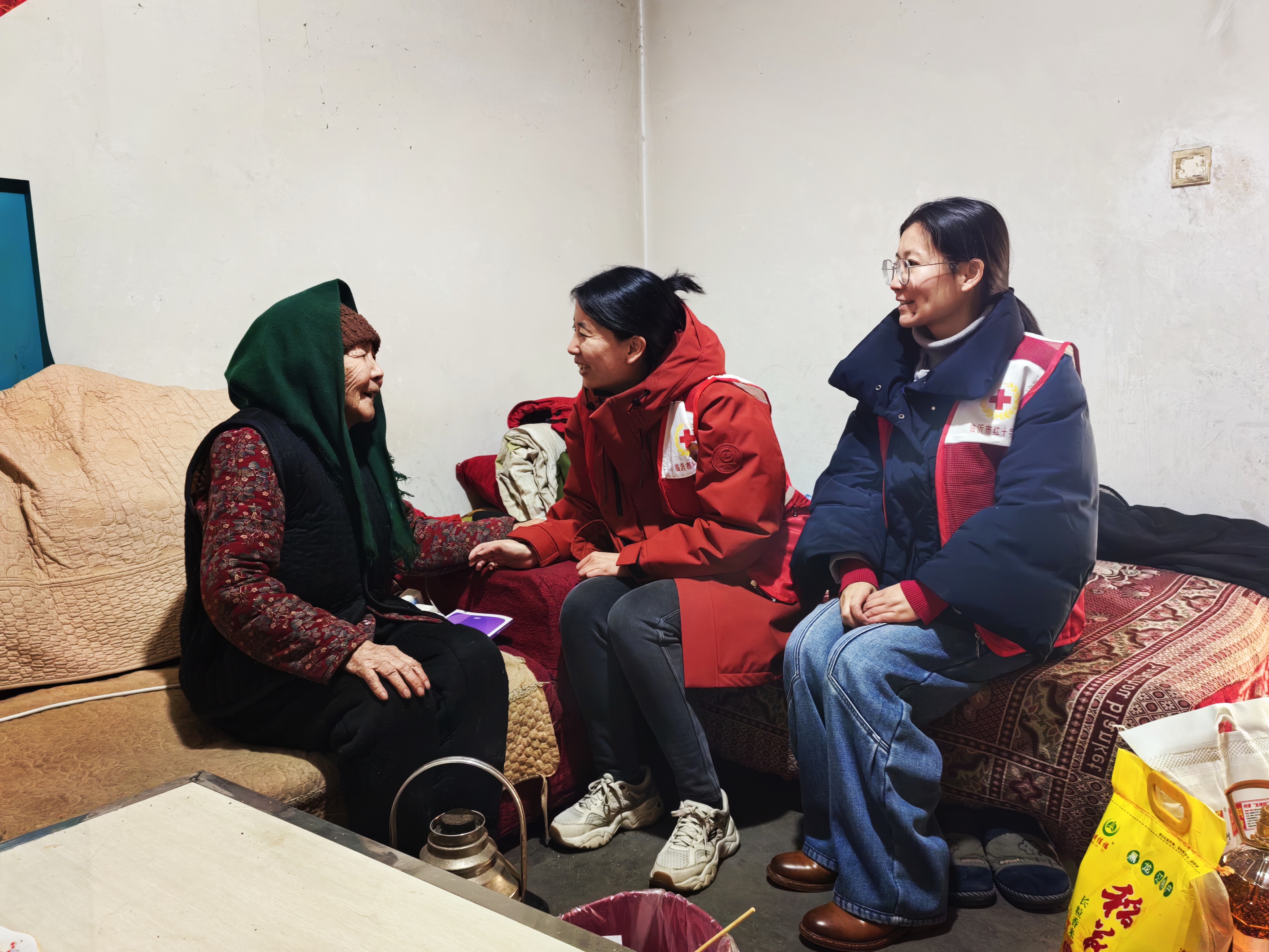 岁末天寒,情暖新春。2月3日,临沂卫校“七彩沂蒙”养老照护志愿服务队的60余名教师志愿者,走进砚台岭社区开展志愿服务活动,将兰山区红十字会捐赠的米面油等爱心物资送到老人家中,让社区老人在寒冬里感受到浓浓的关怀与温暖。