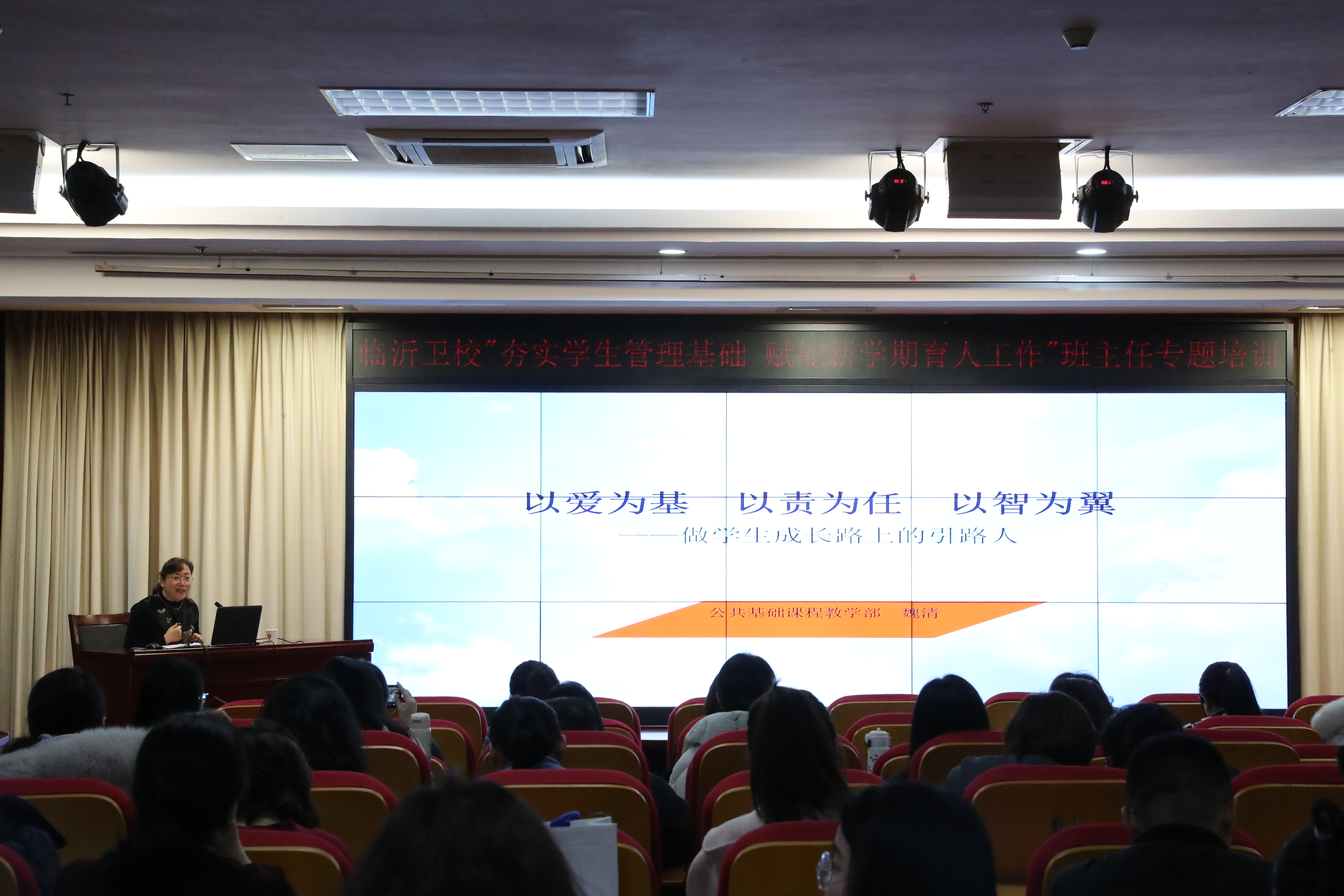 为全面提升班主任队伍的专业素养与育人能力,夯实班级管理根基,筑牢校园安全防线,临沂卫校于3月5日成功举办了新学期班主任专题培训。本次培训围绕师德修养、班级文化、安全教育、活动育人及晨读组织等核心议题展开,全体班主任齐聚一堂,充电赋能,共话成长。