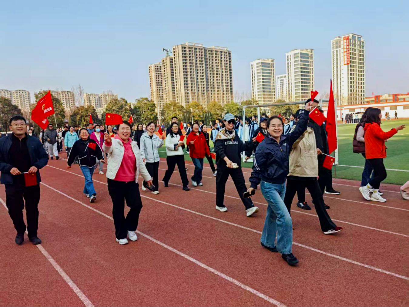 随着发令枪响,教职工们精神抖擞、列队出发,在春日暖阳中迈出坚实步伐,用行动诠释“健康学校,师者先行”的深刻内涵。(工会供稿)
