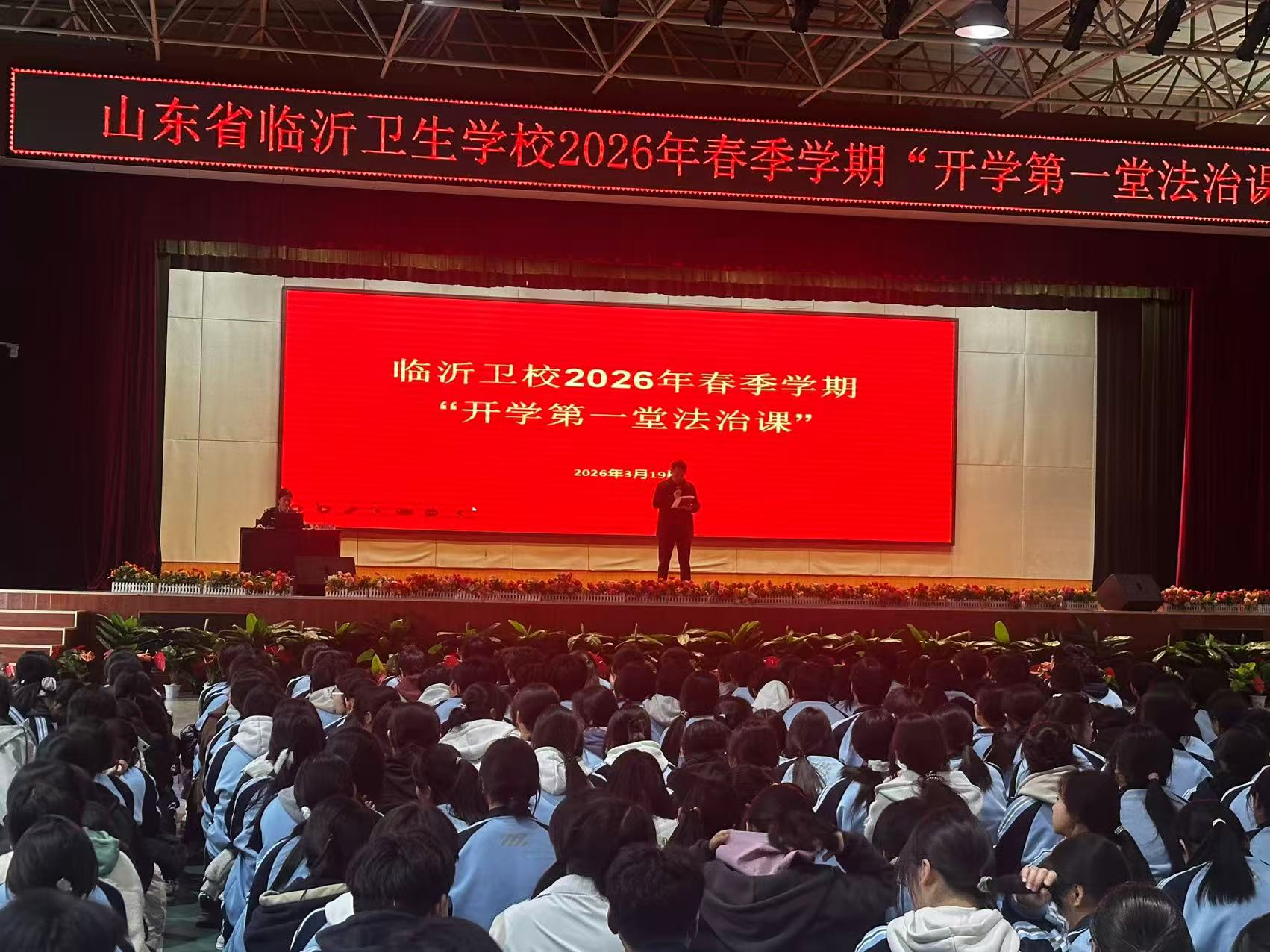 为全面提升广大师生的法治素养和安全防范能力,筑牢校园安全防线,切实增强师生的安全意识和自我保护能力,努力营造安全、文明、和谐的校园氛围,3月19日下午,学校邀请临沂市公安局兰山分局大学派出所、学校法治副校长林海燕、三级警长董亢两位警官走进校园,为全校师生上了“开学第一堂法治课”,本次法治课通过现场观看及视频直播的形式进行展示。