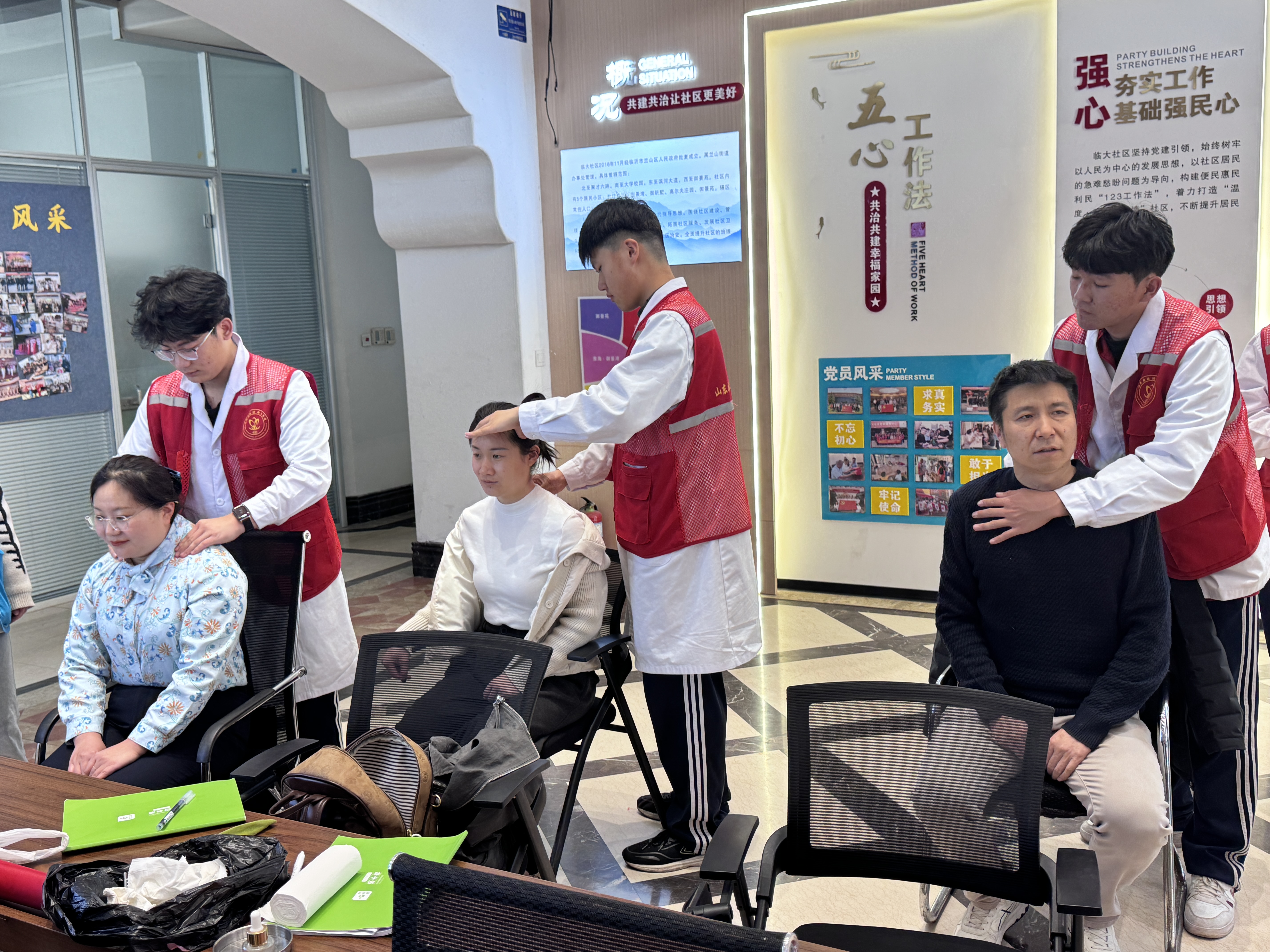 3月12日,我校天使刮痧志愿服务队、南丁格尔救护社团志愿服务队的师生,来到临大社区开展健康义诊志愿服务,将专业关怀送到群众家门口。活动现场暖意融融,志愿者们主动上前,耐心询问每位居民的身体状况,重点针对肩颈劳损等常见问题,运用专业手法为居民提供刮痧、按摩等服务,同时细致讲解日常保健知识和急救技巧,发放急救知识手册,帮助居民系统掌握急救方法、增强自我保护能力。本次志愿服务活动累计服务居民100余人次,切实将贴心、专业的健康服务送到群众身边,让雷锋精神在为民服务中落地生根。