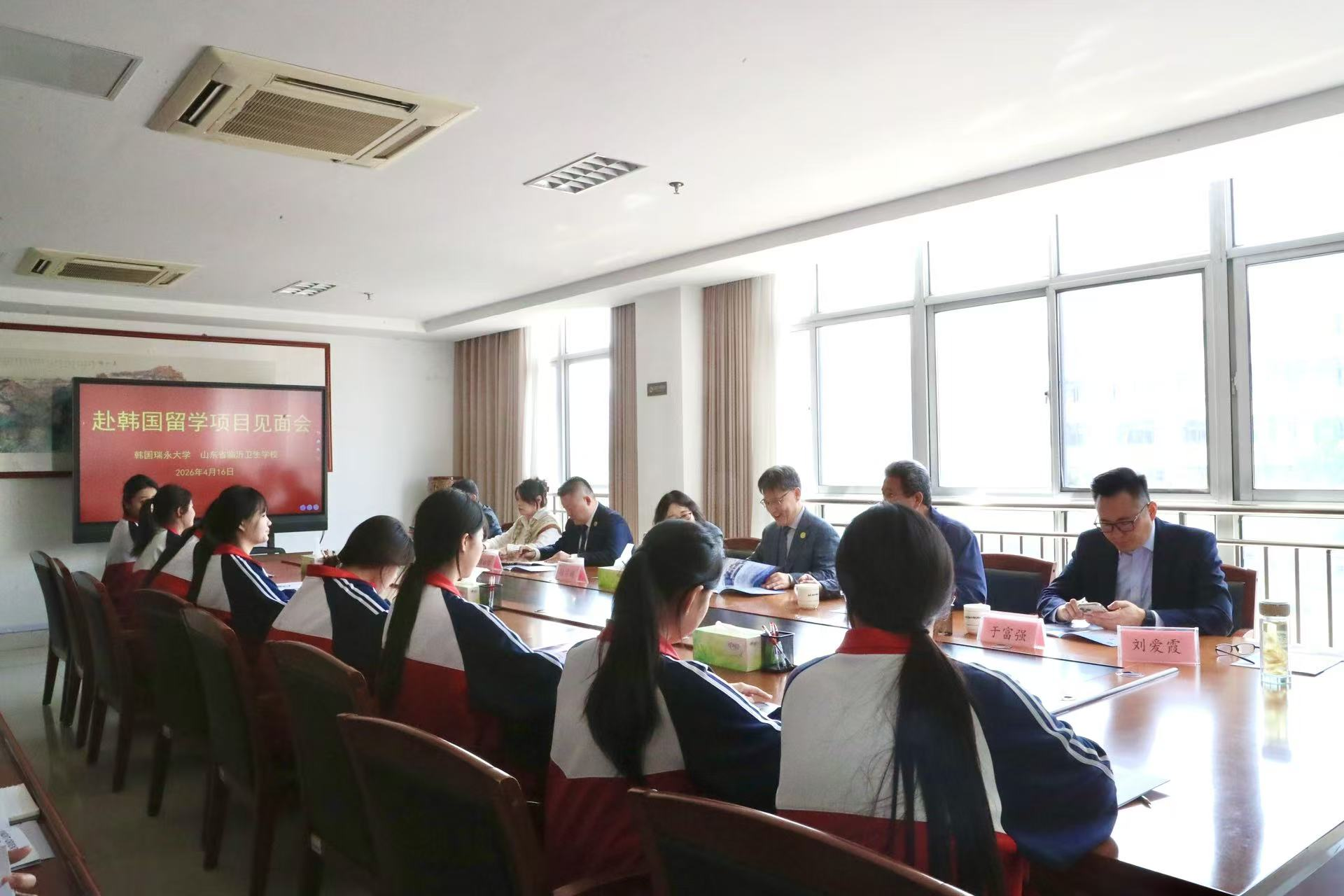 4 月 16 日上午,韩国瑞永大学副校长朱勝玩一行莅临我校,开展参观交流与座谈活动。临沂城发国际人才合作有限公司相关负责人,学校党委委员、副校长张旸及相关部门负责人陪同参观并参加座谈。